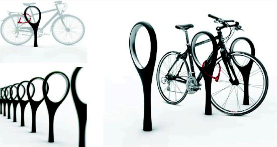 Ce porte-vélos est un élément urbain en béton aux formes sinueuses qui allie élégance et utilité.
