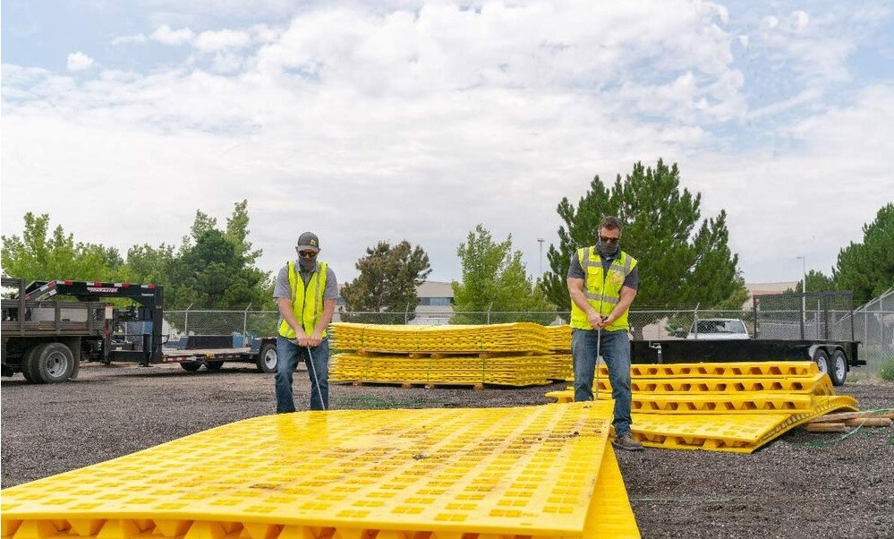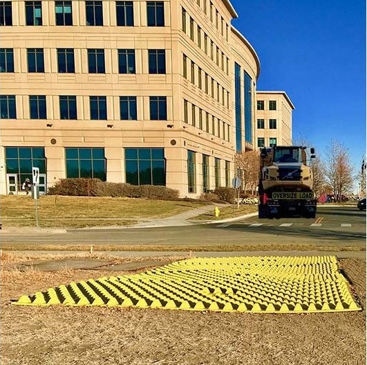 Les plaques de voirie antiboue permettent de réduire la quantité de boue et de débris qui se déposent au niveau des entrées de chantier.
