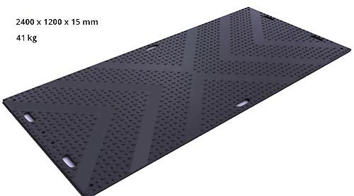 Avec des dimensions de 2400 x 1200 x 15 mm, la plaque de roulage offre une surface suffisante pour assurer la stabilité des engins et véhicules.