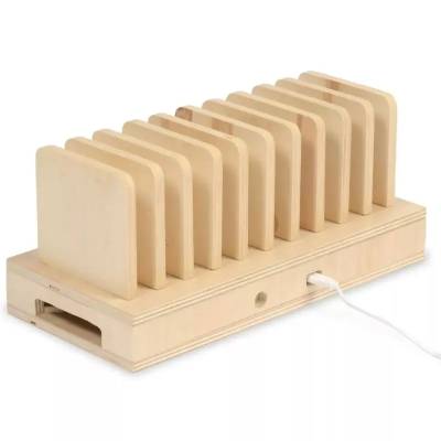 station de recharge en bois pour école a été conçue pour simplifier la recharge quotidienne des tablettes utilisées par les élèves.