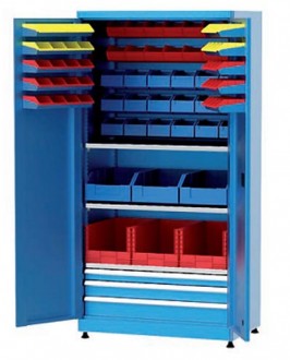 Cette armoire à portes battantes fermant à clés, permet un stockage sécurisé de vos pièces détachées de différentes tailles.