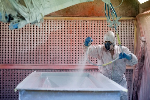 C"est un atelier de peintre en bâtiment pour peindre diverses pièces métalliques ou bois.