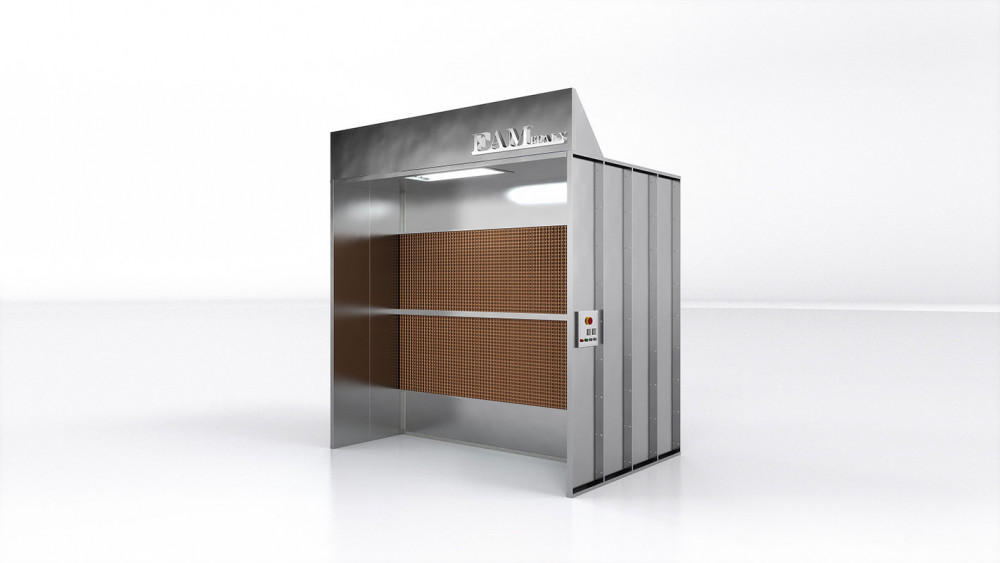 Cette cabine de peinture industrielle flexible permet de peindre de gros véhicules du secteur ferroviaire, nautique, aéronautique et poids lourds.