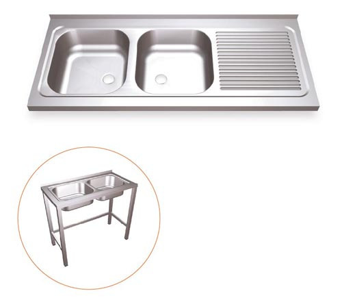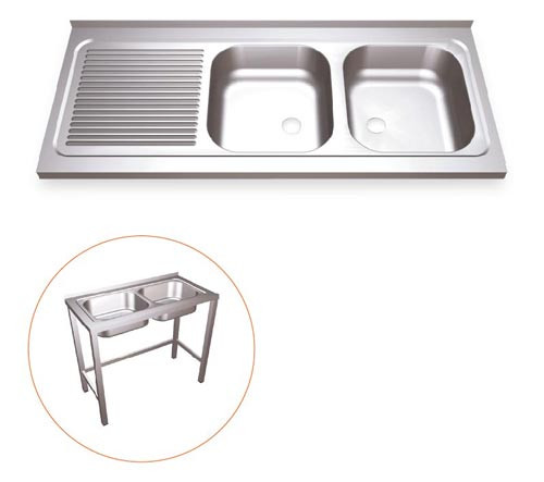 Réf. TC : 757593853Plonge 2 bacs inox avec égouttoir Avec évier à gauche 800 x 1400 x 700 250 x 500 x 400 31,20