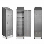 je cherche une armoire en inox de 1m de large au moins 1m90 de haut pour ranger balais et produits d entretien. Le dessus ne doit pas spécialement être incliné on veut juste que la couleur soit inox brut merci