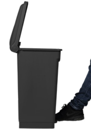 Collecteur de poubelle à pédale permettant à l'utilisateur de jeter ses déchets sans toucher le couvercle manuellement.