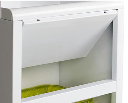 Un support de sac en acier galvanisé à l'intérieur de la borne facilite le changement de sac et maintient le sac en place, évitant les débordements et simplifiant la gestion des déchets. |