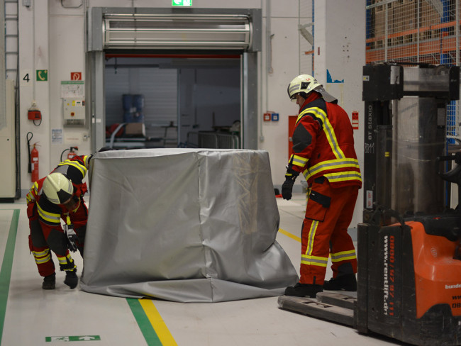 La couverture anti-feu pour caisse de stockage est un équipement de sécurité utilisé en cas d'incendies de liés au stockage de matériels avec batteries Lithium-ion.