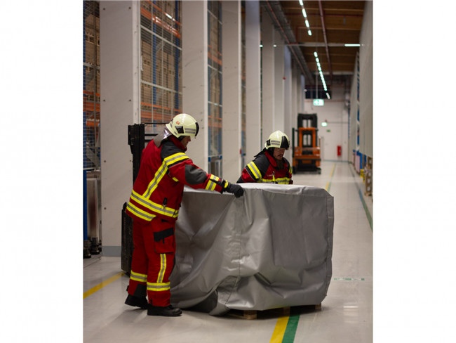 Couverture anti feu batterie lithium - caisse palette stockage