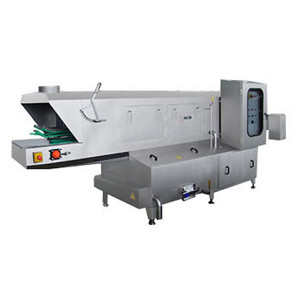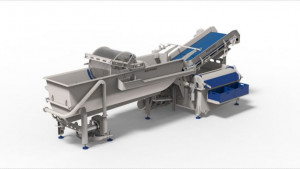 Ces légumes coupés sont nettoyés intensivement dans un bac de lavage puis convoyés sur une goulotte vibrante.