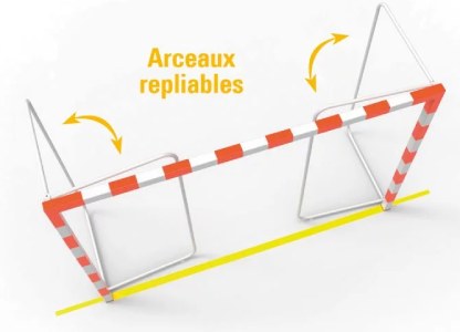 Grâce à leurs arceaux repliables Ø 32 mm, ces buts se plient facilement pour libérer l’espace et faciliter le stockage.