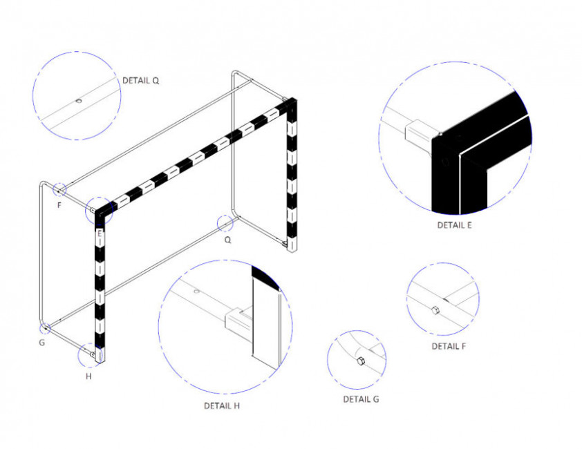 Cette cage de handball est équipée des arceaux arrières rabattables pour faciliter le rangement.