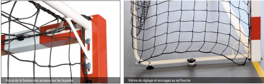 Chaque but est équipé d’une barre de stabilisation Ø 32 mm à fixer au sol, améliorant la tenue sur toutes les surfaces de jeu.
