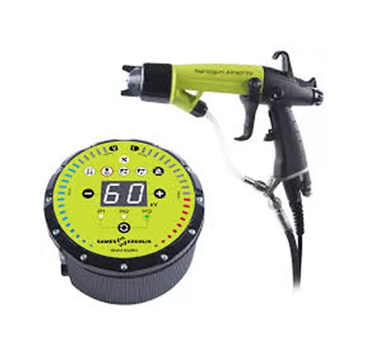 La différence réside dans la technologie électrostatique : l’extrémité du pistolet est reliée à une haute tension de 60 à 100 kV.