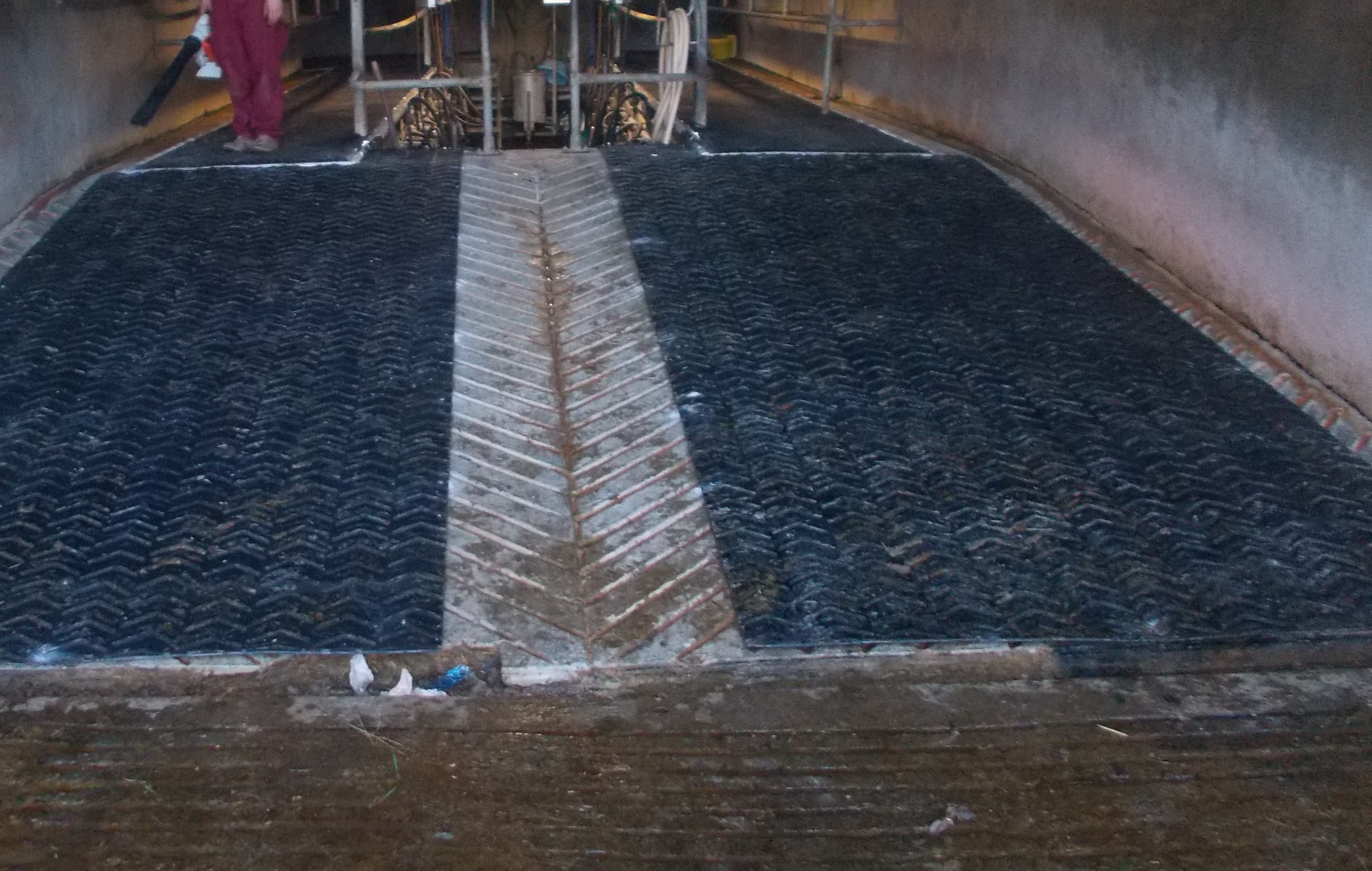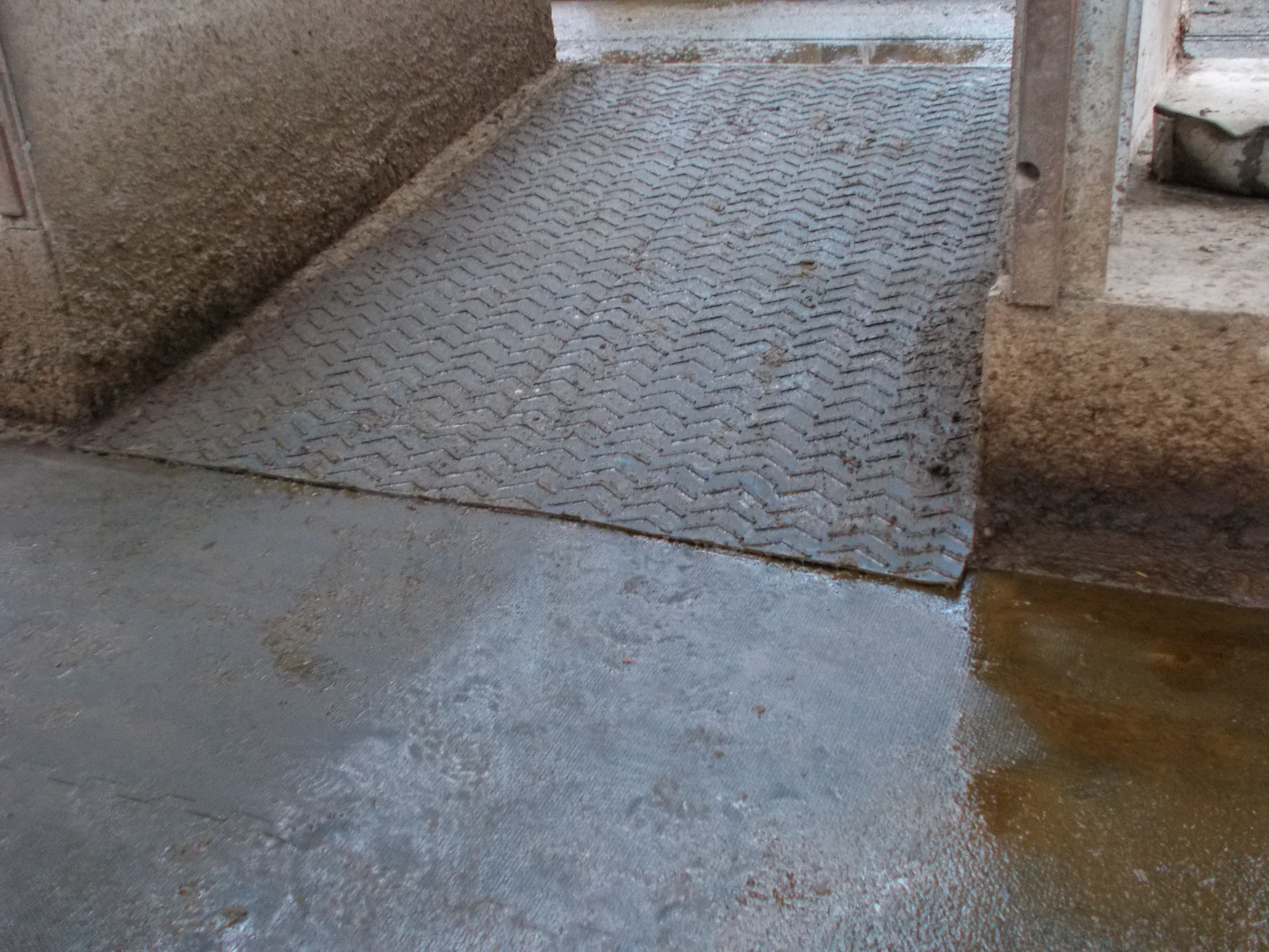 Cette rampe caoutchouc facilite le passage des bovins dans les bâtiments d'élevage.