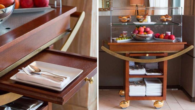 La tirette de service coulissante constitue l'atout majeur de ce chariot restaurant.