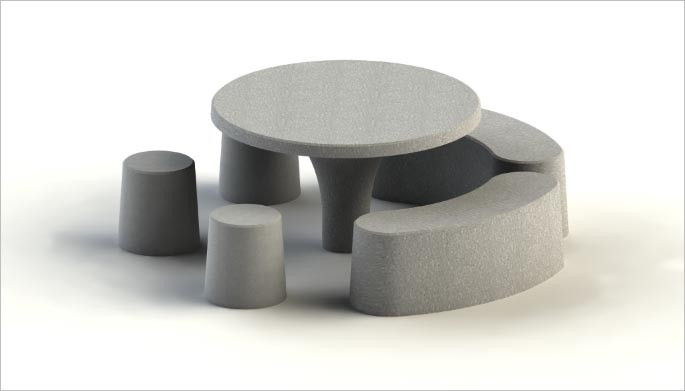 Ce mobilier s'intègre dans les aménagements extérieurs avec une forme ronde qui favorise la convivialité.