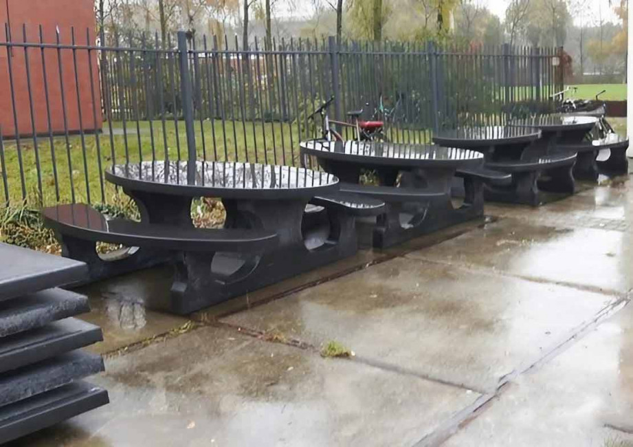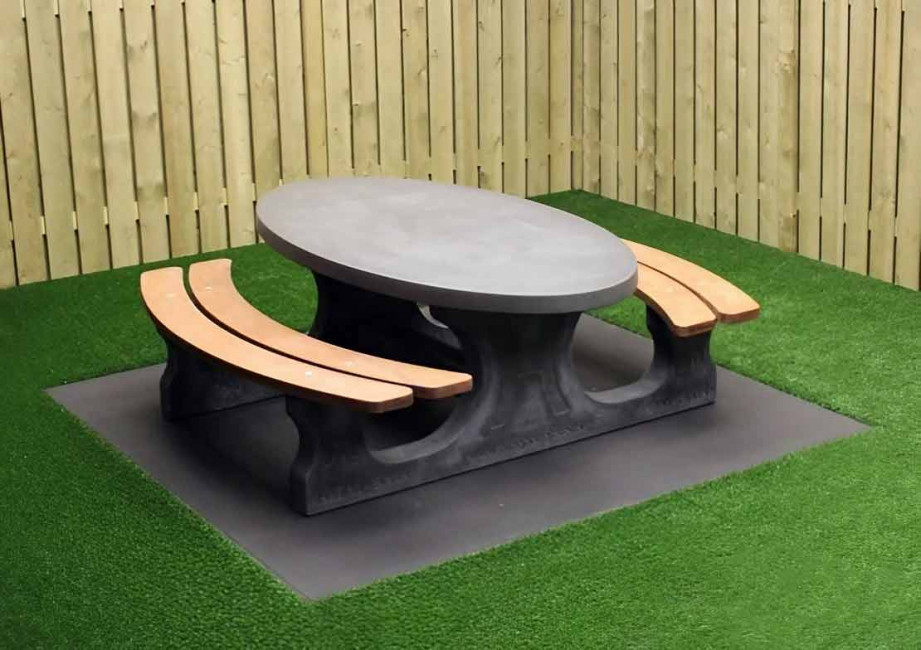 pique-nique ovale est fabriqué d’une seule pièce en béton coulé et est disponible dans les couleurs béton naturel ou béton anthracite.