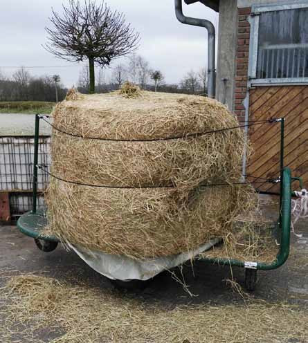 La conception en acier robuste composée de tubes ronds thermolaqués offre suffisamment de place pour tous les types de grands ballots, qu’ils soient rectangulaires ou ronds.