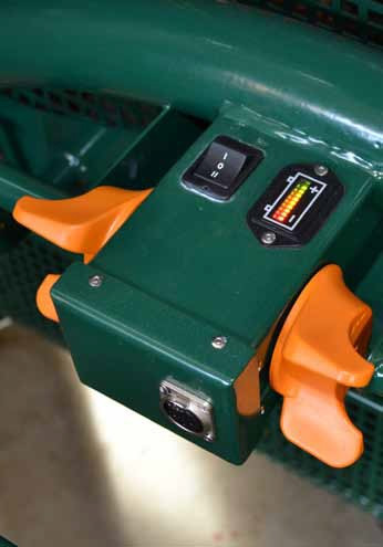 - Gros pneus avec roulements à billes et roue pivotante permettant de pousser facilement jusqu’à 2 grosses balles