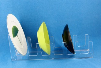 Ce présentoir pour assiettes Plexiglas est grand porte-assiettes réalisé en verre acrylique permet de présenter et de mettre en valeur en magasin, 6 assiettes de toutes tailles.