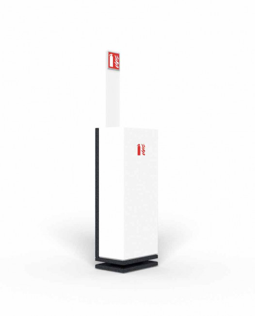 Sa face avant arbore un pictogramme extincteur découpé avec précision, conférant une signalétique claire et immédiatement reconnue en cas d’urgence.