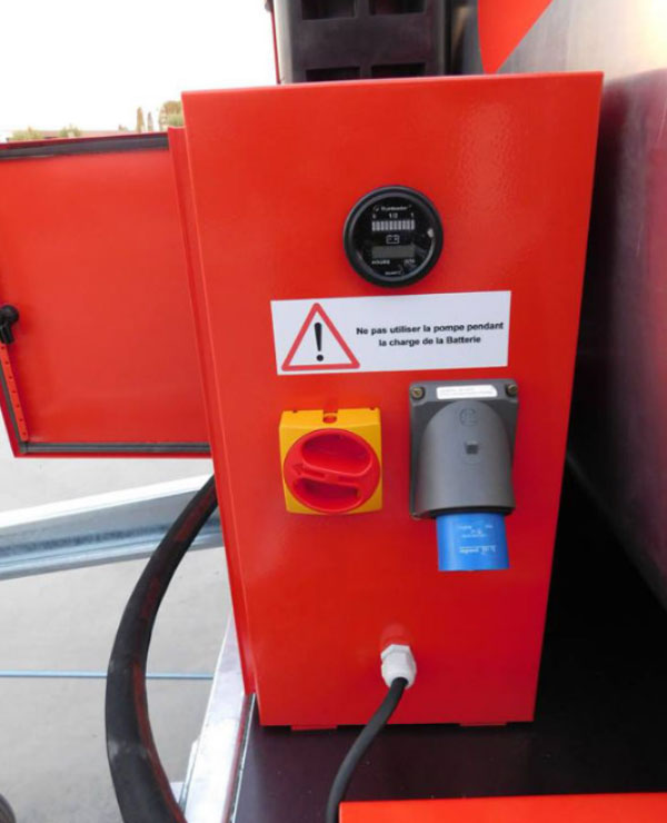 PACK 3 : Pompe électrique ATEX* 50L/min – Coffret électrique intégré incluant la batterie rechargeable 12V, chargeur 230V et la protection électrique.