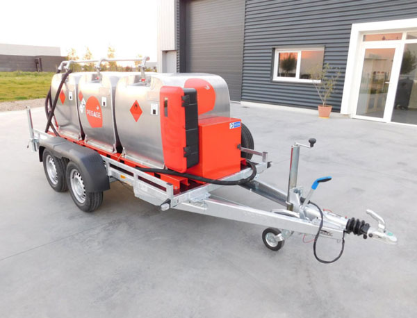 Cette remorque de transport et de distribution pour carburant est faite pour vous. Homologuée et conforme à l’ADR pour le transport de matière dangereuse sur route ouverte.