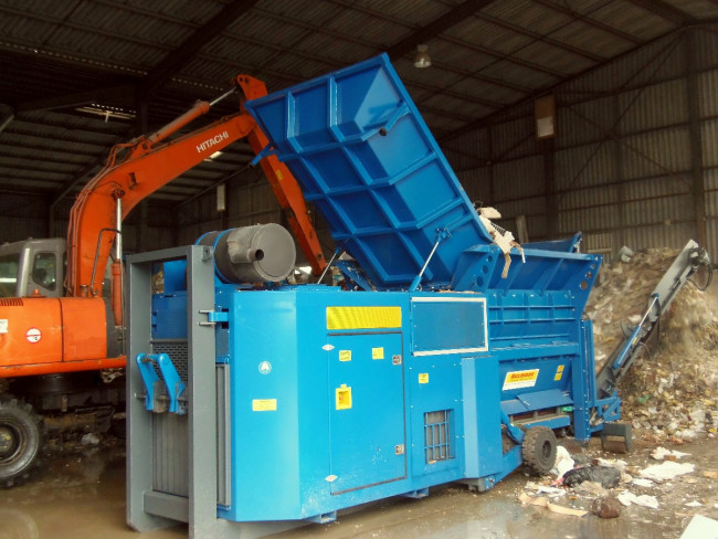 Son rotor de 760 mm de diamètre a une longueur de 2260 mm et il est muni de 14 outils fixes en acier spécial au manganèse à haute résistance à l’abrasion. Les peignes latéraux de coupe sont en acier haute résistance à l’abrasion. Système de chicanes d’étanchéité au niveau des passages d’arbres à travers le corps du broyeur. La vitesse de rotation su rotor est réglable en continu de 20 à 30 T/min. Lorsque le seuil de pression maximum est atteint le rotor s’inverse, les peignes de contre coupe s’abaissent et les trappes latérales d’éjections s’ouvrent ce qui évite tout risque de casse.