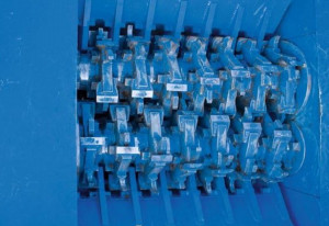 Unité de broyage à 2 rotors de 690 mm de diamètre et de 1565 mm de longueur avec arbres acier haute résistance largement dimensionnés et outils de grande capacité broyant dans les 2 sens et rechargeables. Les 35 outils par rotor en acier spécial au manganèse à haute résistance à l’abrasion sont disposés de manière à assurer une agressivité et un débit maximal. Peignes latéraux de coupe en acier spécial à haute résistance à l’abrasion. Système de chicanes d’étanchéité au niveau des passages d’arbres à travers le corps du broyeur. Peigne de rebroyage remplaçable sous les rotors pour affinage des produits broyés permettant de modifier la finesse de broyage suivant équipement de cette contre-coupe. Outils fixes soudés assurant une grande robustesse, l’usure est compensée par des rechargements directs sur place sans démontage. Couple de plus de 90 000 N*m par rotor.
