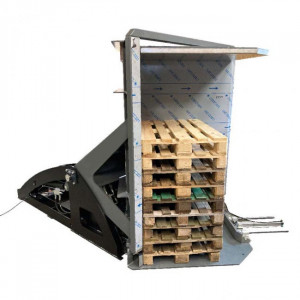 Le retourneur de palettes est une machine fixe, son action est totalement automatique. La palette peut être introduite par un transpalette manuel ou un gerbeur électrique.