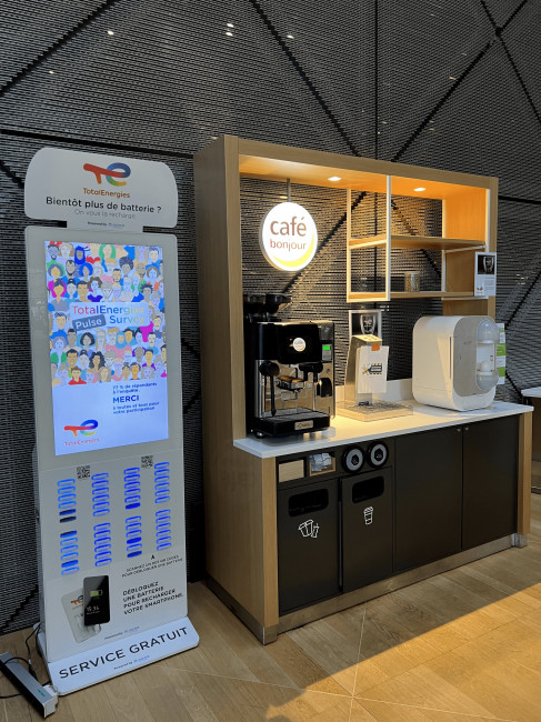 Parfaite pour l’accueil de vos collaborateurs/visiteurs dans vos bureaux ou lors de vos salons/événements pour ne pas tomber en panne de batterie sur son téléphone et offrir un service de recharge de téléphone innovant.