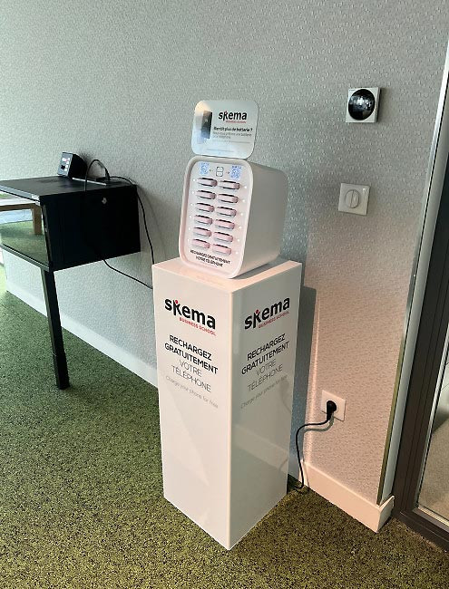 Parfaite pour l’accueil de vos collaborateurs/visiteurs dans vos bureaux ou lors de vos salons/événements pour ne pas tomber en panne de batterie sur son téléphone et offrir un service de recharge de téléphone innovant.