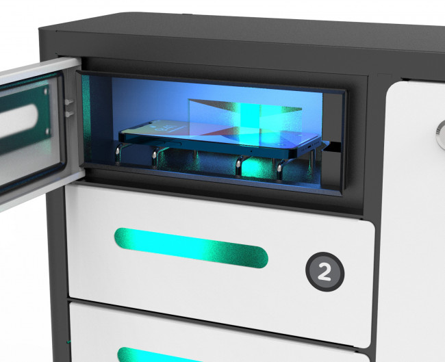 En chargeant votre téléphone dans l'un des casiers, il est automatiquement soumis à un processus de stérilisation UV-C qui élimine jusqu'à 99,9 % des germes et bactéries présents sur la surface de votre appareil.