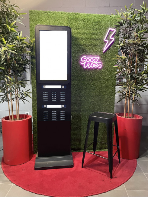 Cette borne de recharge avec 30 batteries externes vous permet d'offrir à vos clients et visiteurs une plus grande liberté sur tout le parcours clients / visiteurs.