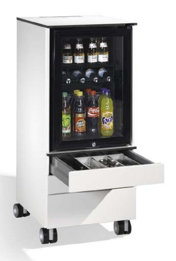 Ce meuble mobile avec réfrigérateur intégré est l'assistant parfait pour un ravitaillement flexible.