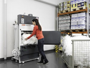 Cette presse à balles réduit le volume de cartons ou films plastiques de manière économique.