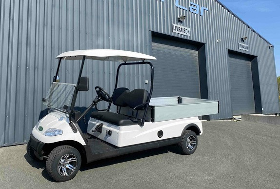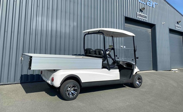 Le véhicule est équipé d'un éclairage avant et arrière, de clignotants, de feux stop, d'un klaxon, d'un bip de recul et d'un chargeur embarqué.