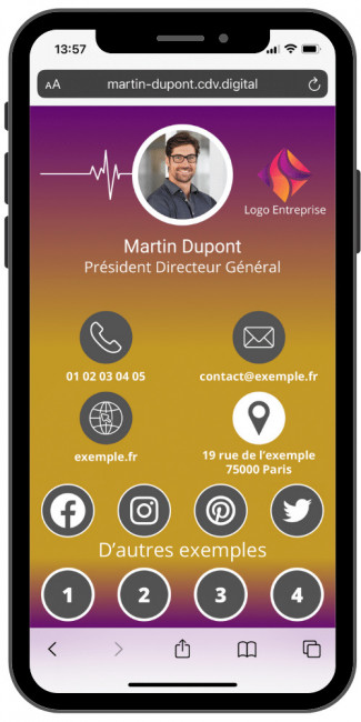 - Carte de visite virtuelle personnalisée et réalisée par un professionnel