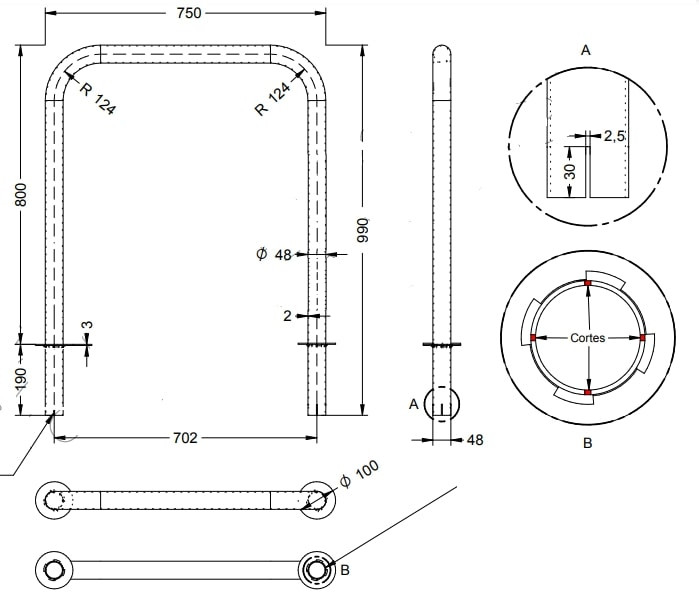 | Réf. TC :109026721 | Support cycle | Inox | 750 | 950 | 8,9 | -