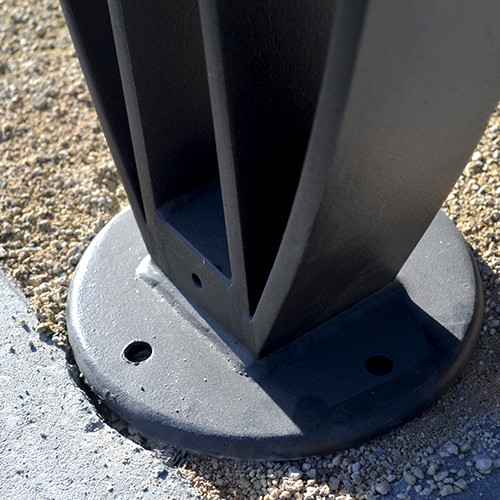 Notre support fabriqué en acier apte à la galvanisation et d’un beau design, est à sceller directement au sol.
