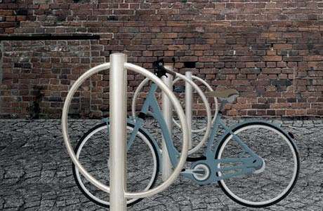 Cet arceau vélo rond en inox est un mobilier urbain qui permet de ranger et d'attacher tous types de deux-roues.