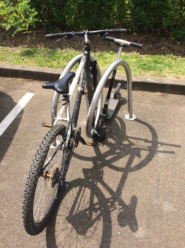 - Rangement ordonné des vélos ou des trottinettes, toutes combinaisons possibles : droit, en épi, décalé