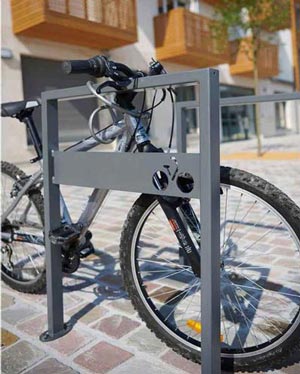Son design sobre et personnalisable en fait un incontournable du mobilier urbain pour cycles.