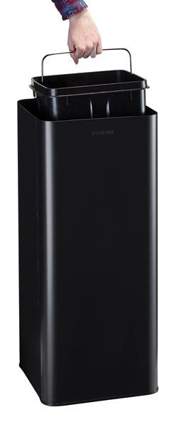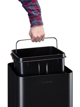 seau intérieur en polypropylène recyclé avec anse, offrant une capacité de charge jusqu'à 30 kg.