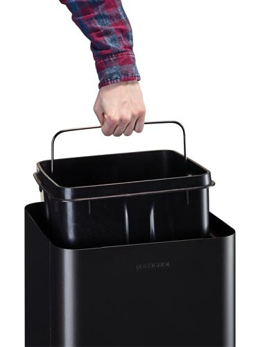 Ce seau se retire aisément pour un vidage propre, sans contact direct.
