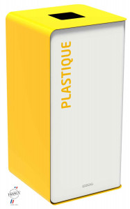 Réf. TC : 513247568Borne tri sélectif sans roulettes 75 Blanc Jaune Emballages Acier poudré anti-UV 19.2
