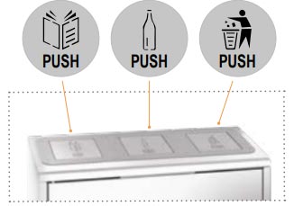 La possibilité de personnaliser les pictogrammes sur chaque trappe permet d'adapter la borne aux besoins spécifiques de tri de chaque lieu, améliorant ainsi l'expérience utilisateur et la conformité au tri. |