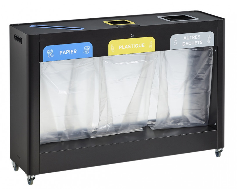 Ouvertures calibrées : facilite la répartition des déchets (papier, plastique, autres).