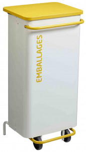 Fiche technique - Poubelle de tri mobile 110L emballages Blanc Jaune
